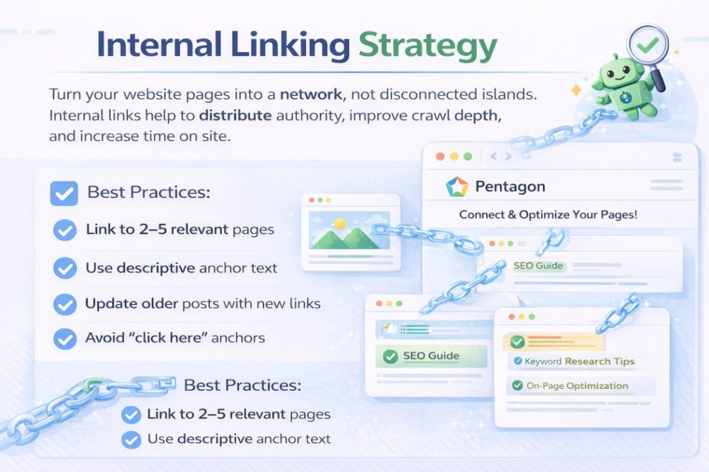Turn your website pages into a network, not disconnected islands. Internal links help to distribute authority, improve crawl depth, and increase time on site. Best Practices: